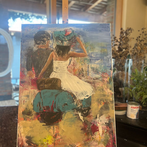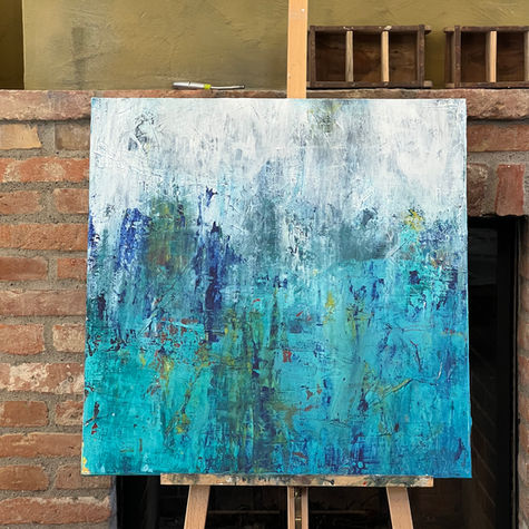 Die Fotografie wird mit Acrylfarbe weitergeführt und am Ende mit Epoxidharz versiegelt. So verschmelzen Foto und Farben zu einer Einheit.